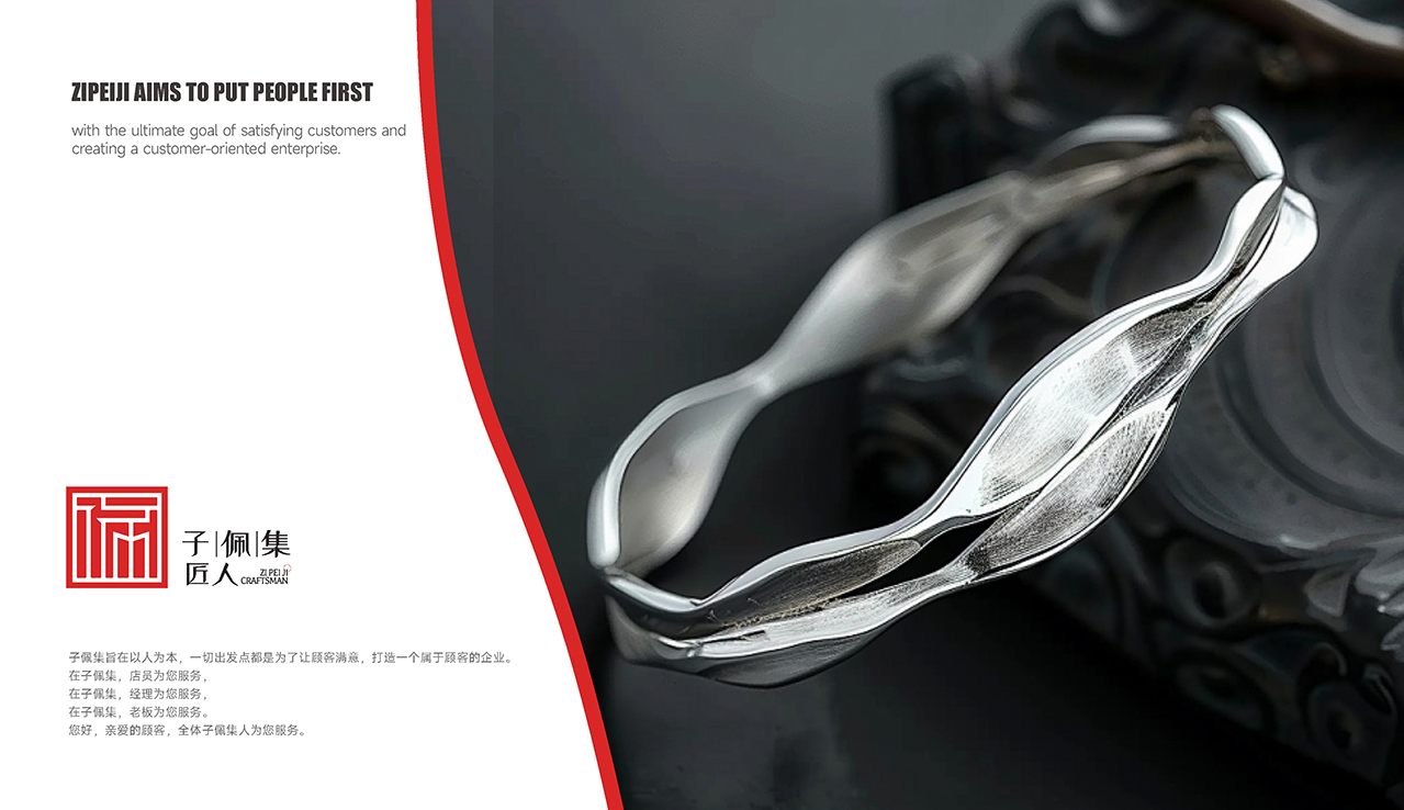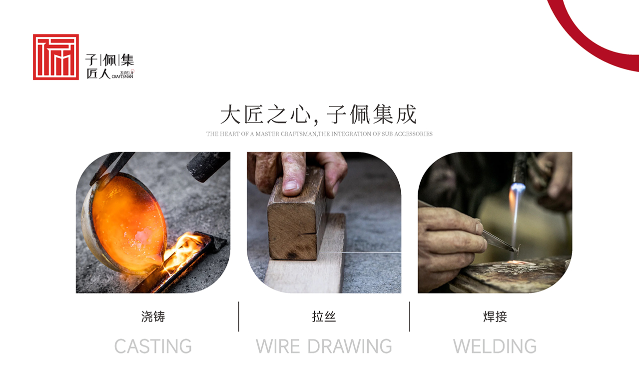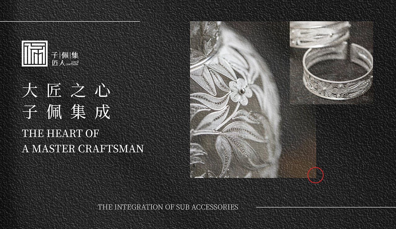 子佩集匠人始终坚持以传统文化、民族手工工艺融合现代时尚元素为主的设计理念,在现代设计和回归传统工艺的文化上进行融合创新,抛却现代机械工艺的层层冰冷,回归手工锤炼的质朴纯粹,传承与发扬非遗手工银饰锻制技艺。在全国各大4A级景区开设线下门店,结合地域建筑之美、婚嫁风俗、银礼文化和茶艺文化,将地方特色文化厚植在手工银饰作品中,打造特色地域文化,感受传承千年的手工银艺之美。